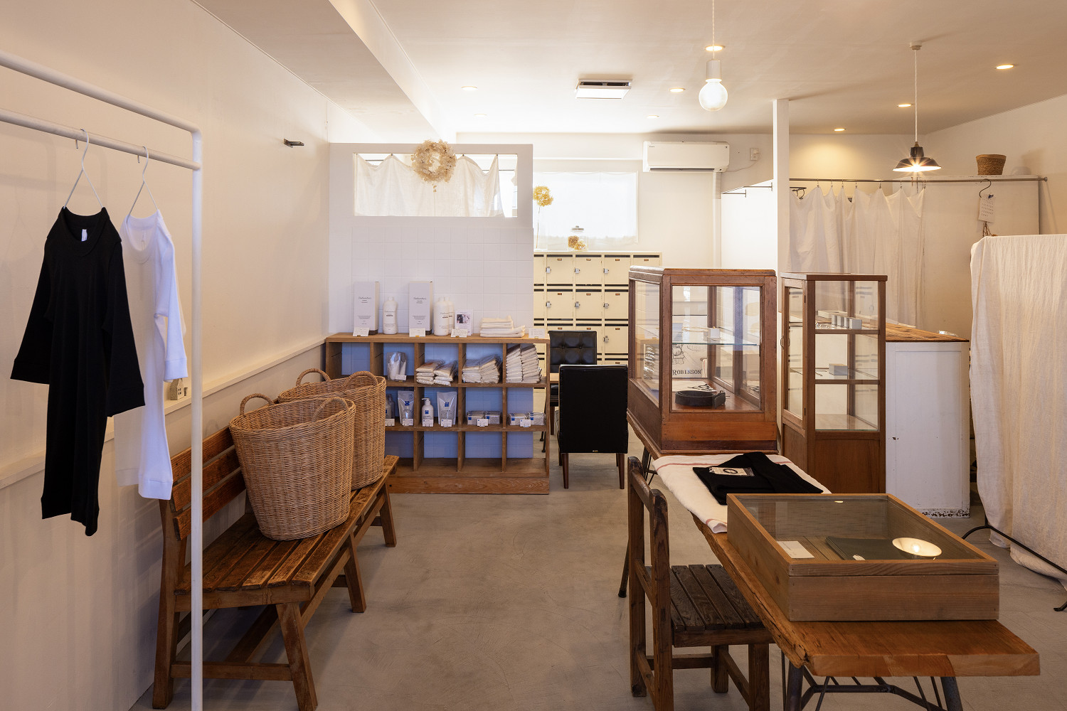 店内は無垢の木やアンティーク什器がやわらかく調和し、