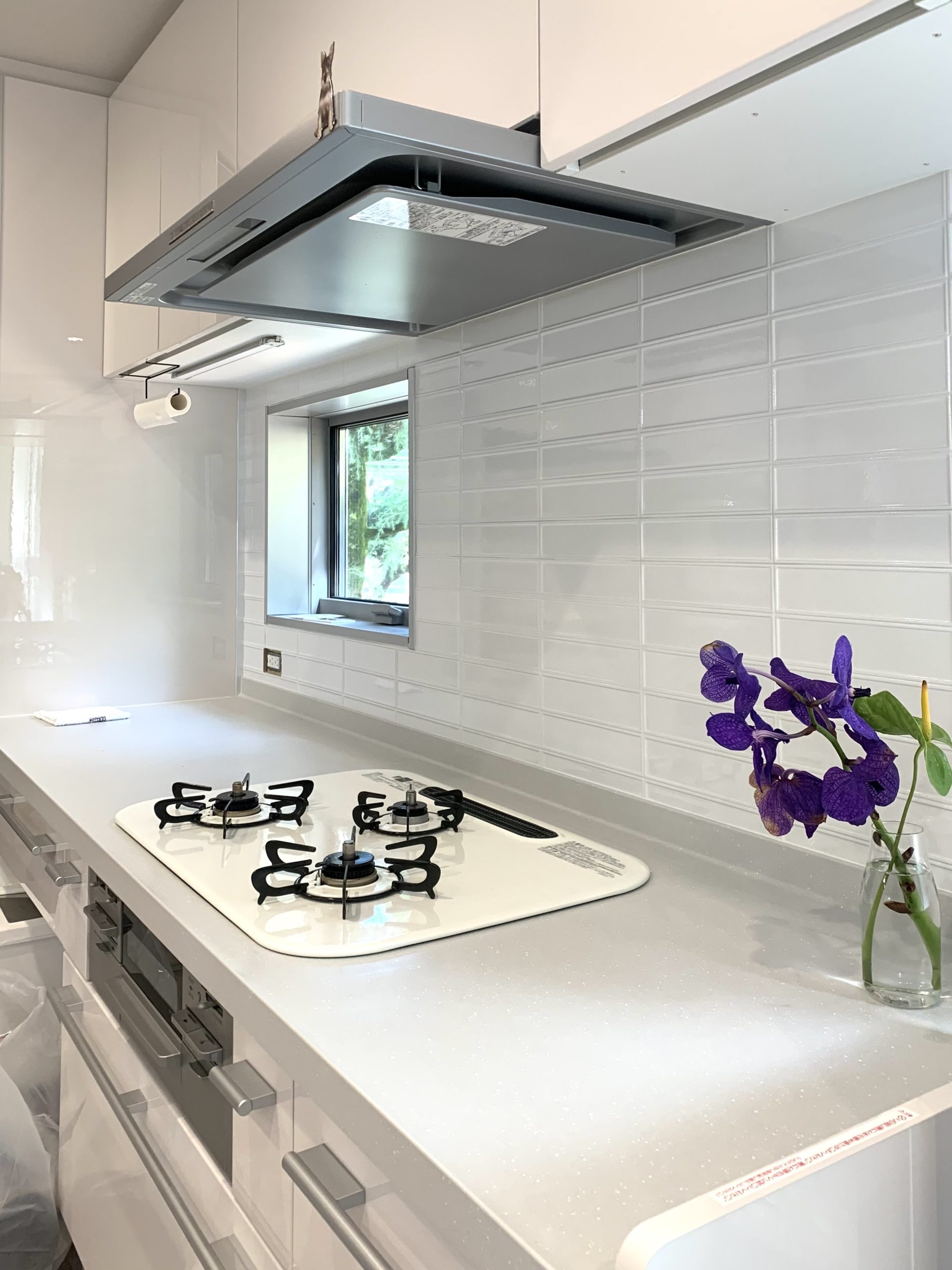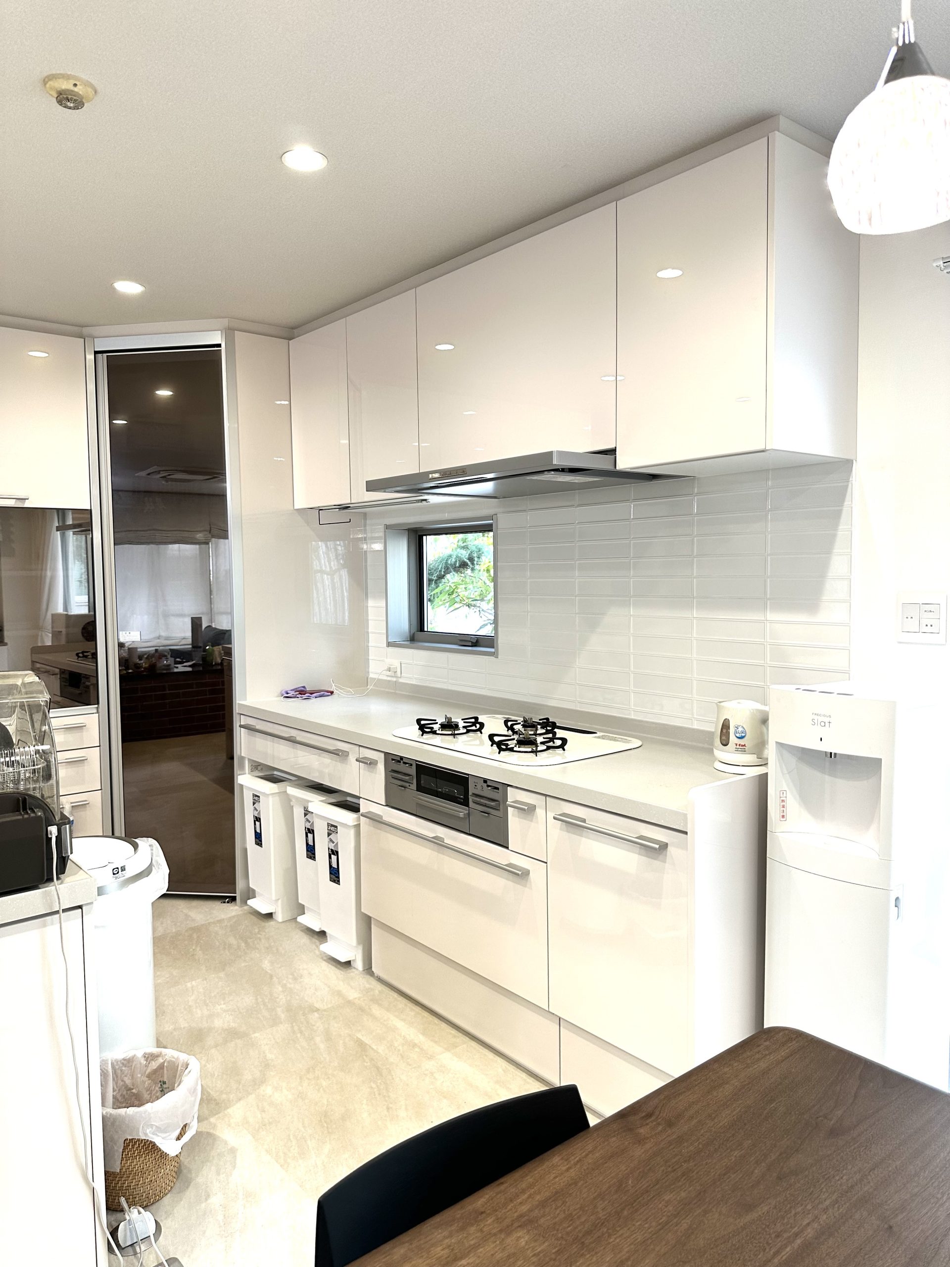 区切られていた空間を“つなぐ”ことで、光と視線が奥まで抜け、家族の気配が自然に感じられる場へと変化しています。南側の開口から入る柔らかな光が、白を基調とした面材やタイルに反射し、空間全体に穏やかな広がりをもたらします。