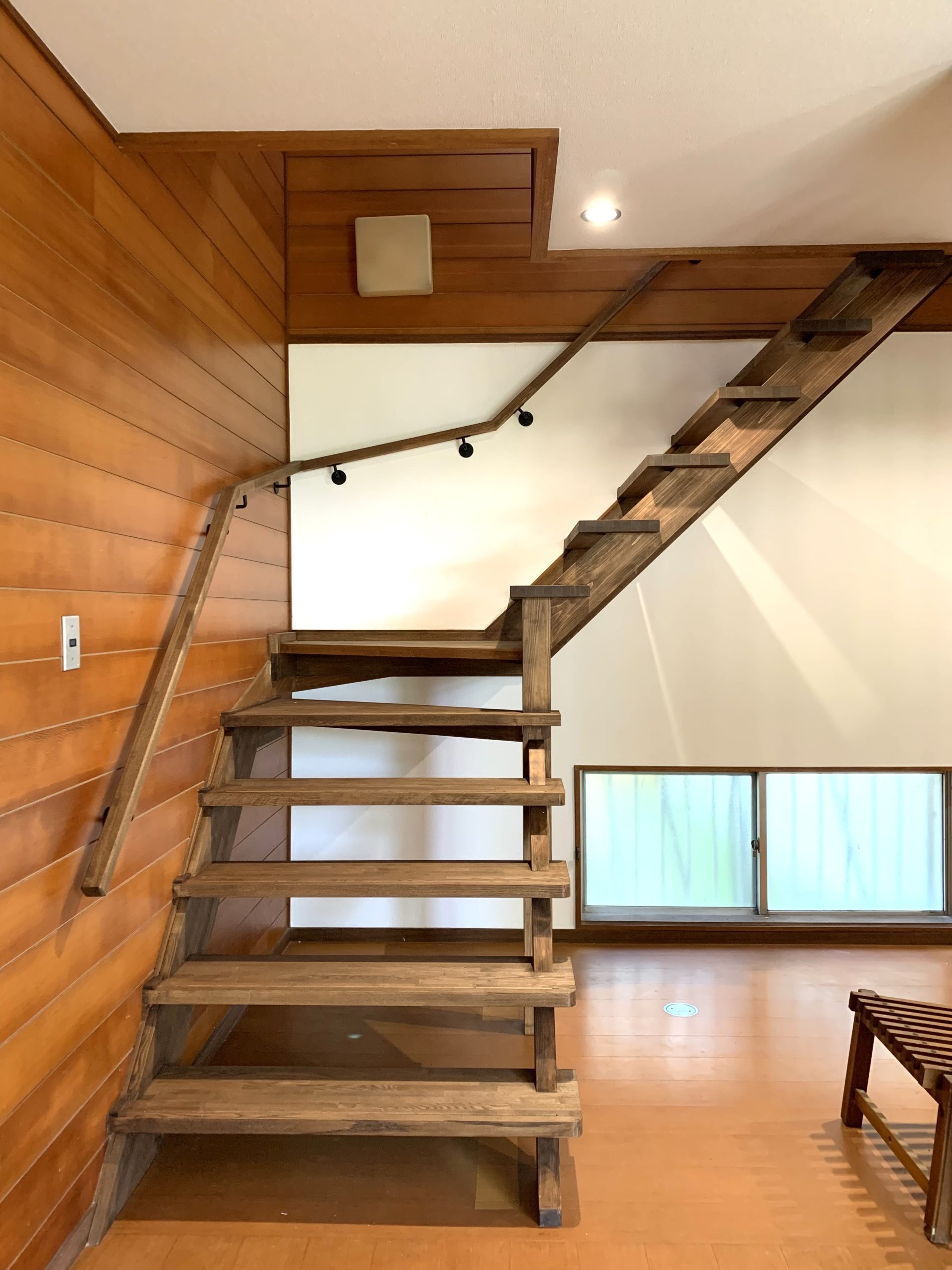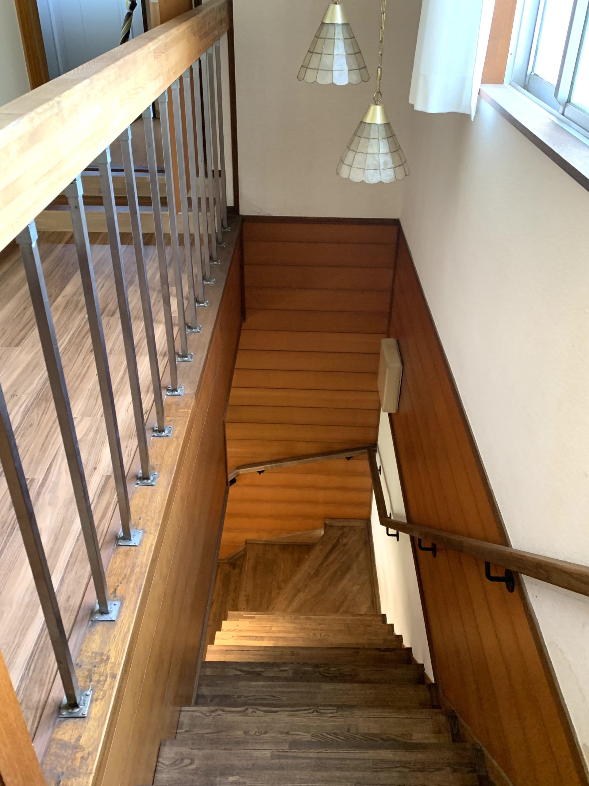 既存の階段は、曲がりのあるスリップ階段。デザイン性は保たれていましたが、踏面寸法が小さく、昇降時に不安を感じる状態でした。