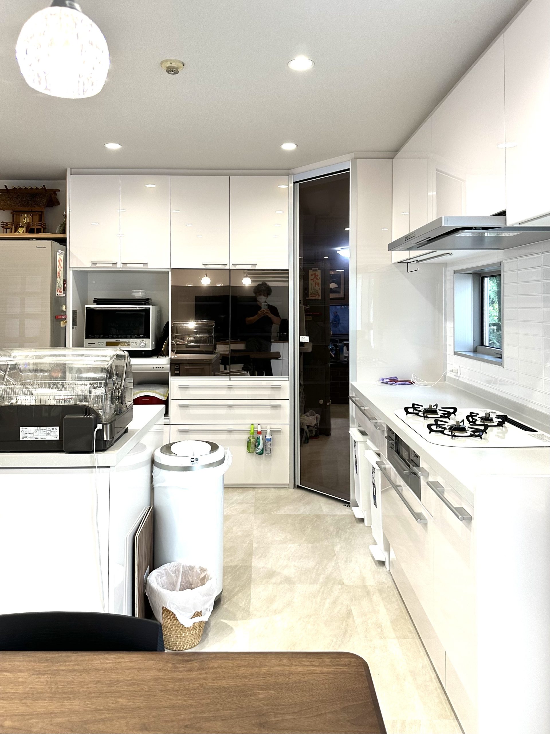 もともとのキッチンは、細かく仕切られた間取りと増え続けた家電や収納により、動線が限定され、実際の広さ以上に閉塞感のある空間となっていました。